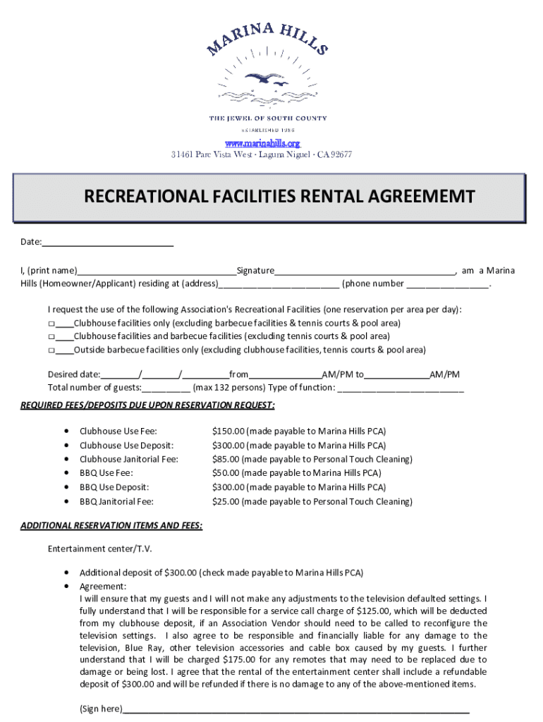 Www.marinahills.org31461 Parc Vista West Laguna Niguel CA 92677RECREATIONAL FACILITIES RENTAL AGREEMEMT
