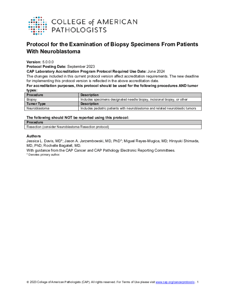 Protocol for the Examination of Biopsy Specimens From Patients With Neuroblastoma Version: 5.0.0.0 Protocol Posting Date: September 2023 CAP Laboratory Accreditation Program Protocol Required Use