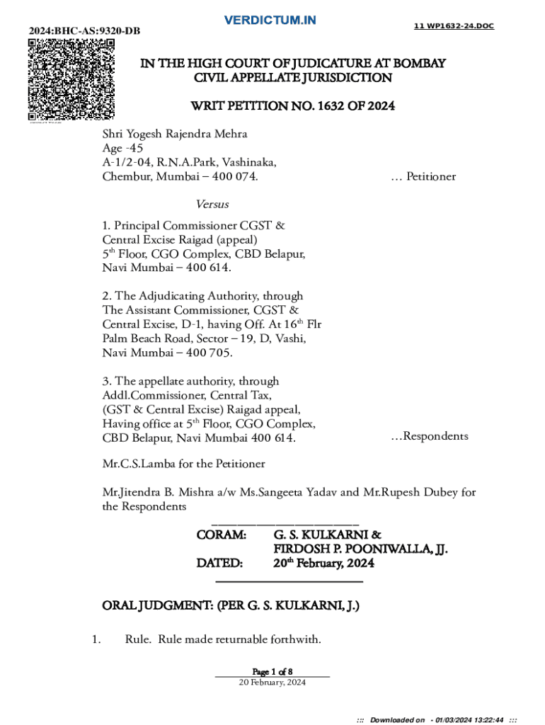 VERDICTUM.IN11 WP163224.DOC2024:BHCAS:9320DB MohiteIN THE HIGH COURT OF JUDICATURE AT BOMBAY CIVIL APPELLATE JURISDICTIONTRUSHA TUSHAR MOHITEWRIT PETITION NO. 1632 OF 2024Digitally signed by TRUSHA
