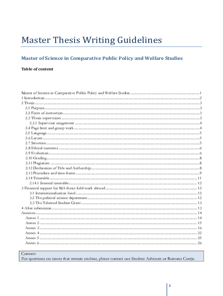 Master Thesis Writing GuidelinesMaster of Science in Comparative Public Policy and Welfare Studies Table of contentMaster of Science in Comparative Public Policy and Welfare Studies .............................................................................1