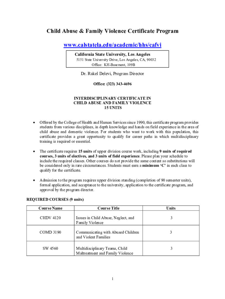 Child Abuse & Family Violence Certificate Program www.calstatela.edu/academic/hhs/cafvi California State University, Los Angeles5151 State University Drive, Los Angeles, CA, 90032 Office: KHBasement,