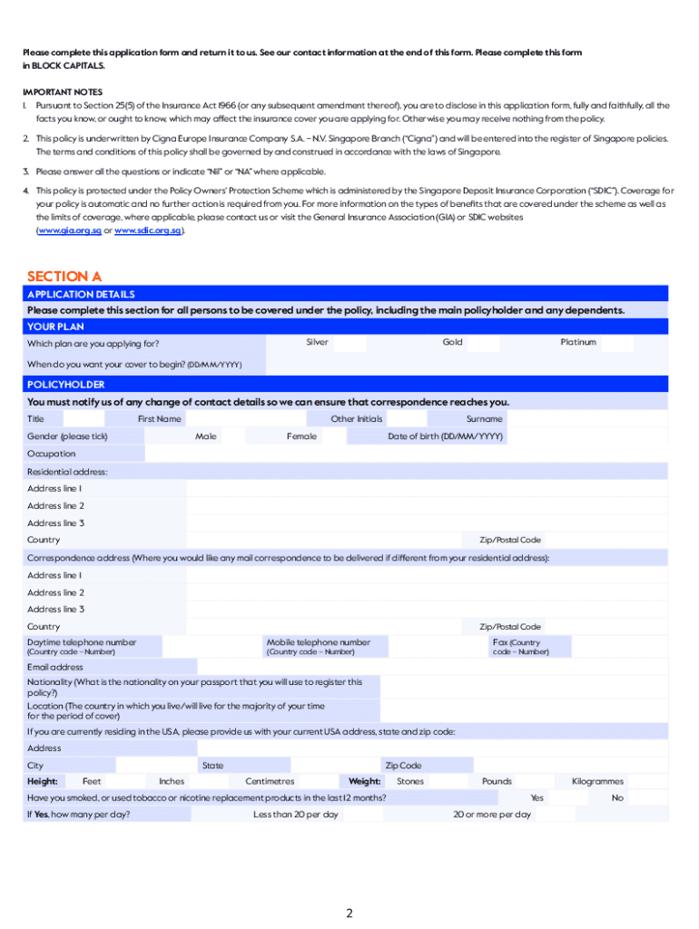 Cigna Global Health options application form Hello! Were glad you would like to join us1Please complete this application form and return it to us. See our contact information at the end of this form.