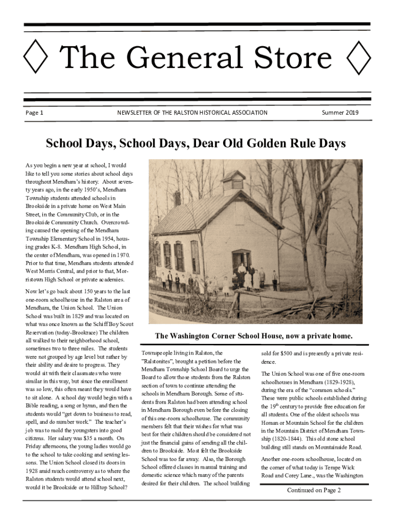 The General Store Page 1NEWSLETTER OF THE RALSTON HISTORICAL ASSOCIATIONSummer 2019School Days, School Days, Dear Old Golden Rule Days As you begin a new year at school, I would like to tell you some