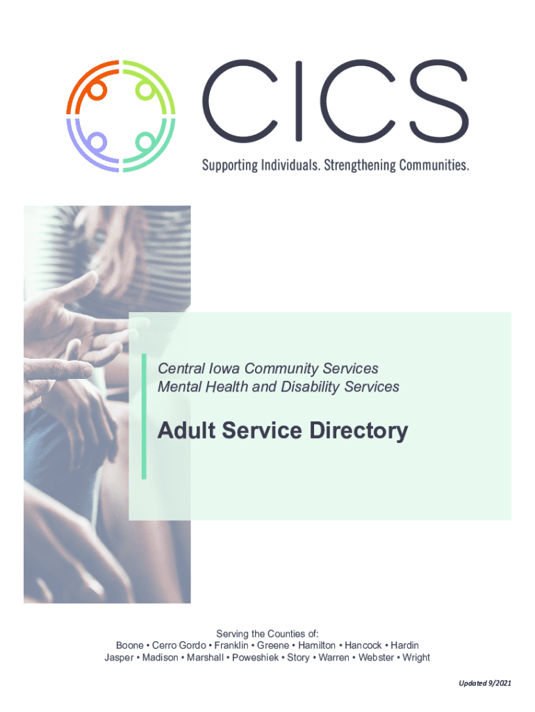 Central Iowa Community Services Mental Health and Disability ServicesAdult Service DirectoryServing the Counties of: Boone Cerro Gordo Franklin Greene Hamilton Hancock Hardin Jasper Madison Marshall