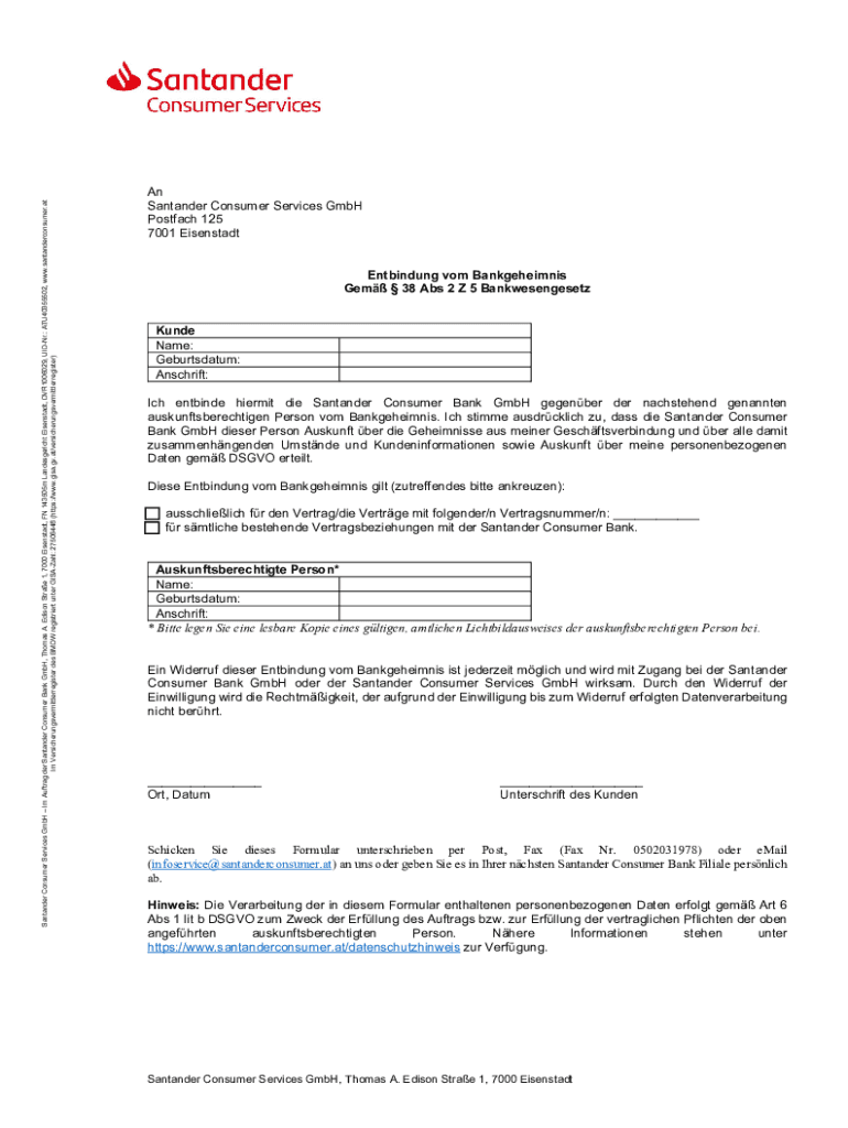 Holen Sie sich kostenlos An Santander Consumer Services GmbH Postfach 125 7001 ...