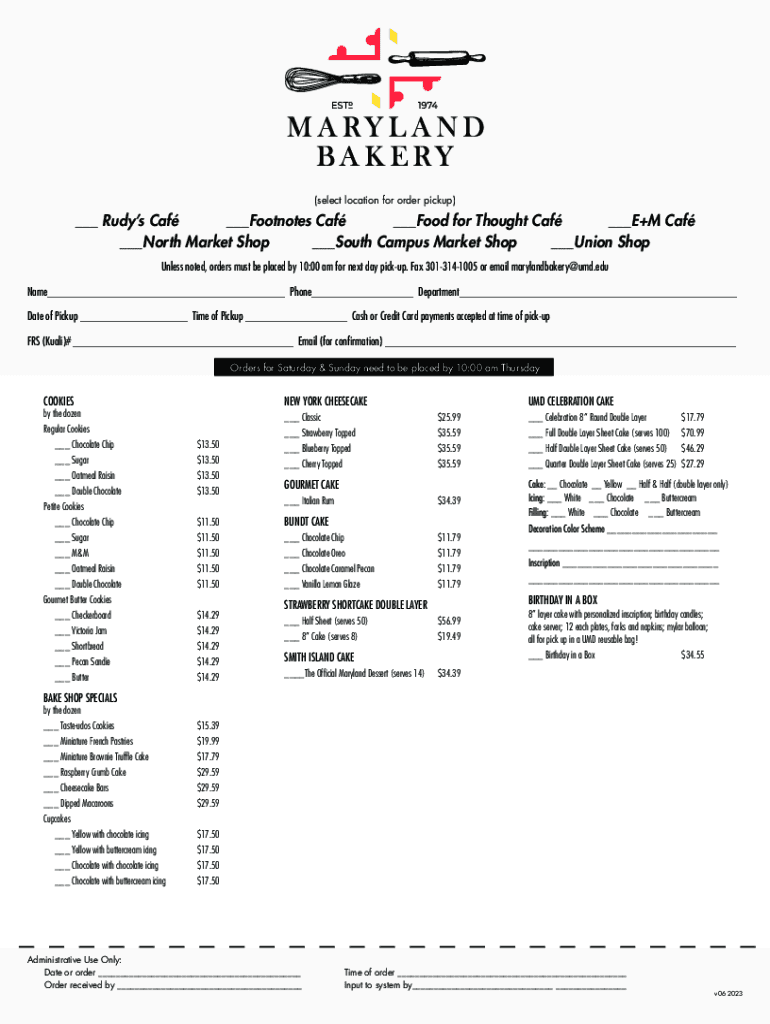 (select location for order pickup)___ Rudys Caf ___Footnotes Caf ___Food for Thought Caf ___E+M Caf ___North Market Shop ___South Campus Market Shop ___Union Shop Unless noted, orders must be placed