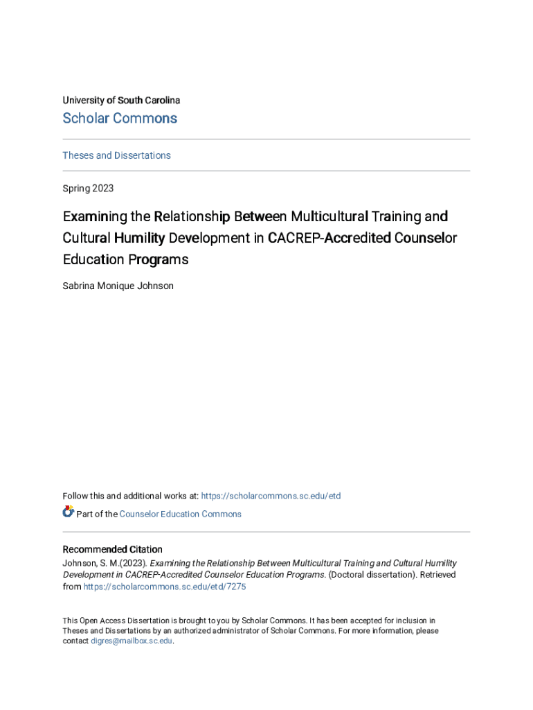 University of South CarolinaScholar Commons Theses and Dissertations Spring 2023Examining the Relationship Between Multicultural Training and Cultural Humility Development in CACREPAccredited Counselor