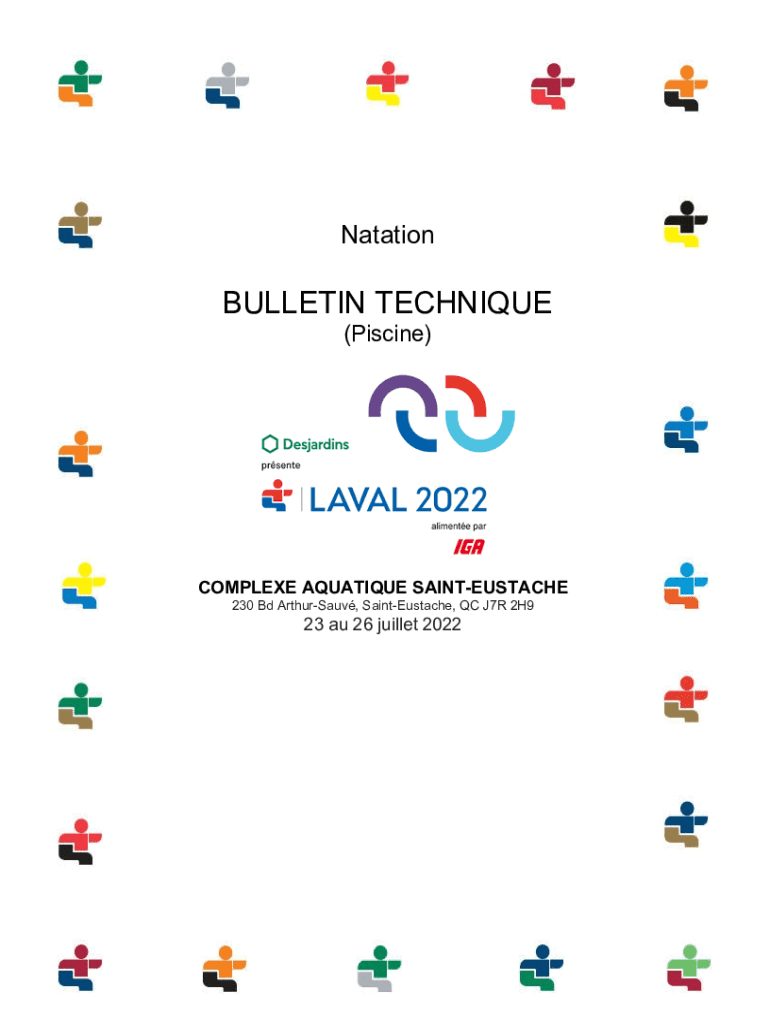 NatationBULLETIN TECHNIQUE (Piscine)COMPLEXE AQUATIQUE SAINTEUSTACHE 230 Bd ArthurSauv, SaintEustache, QC J7R 2H923 au 26 juillet 2022FNQ REPRSENTANTS TECHNIQUES Cynthia Chartrand Jett, Coordonnatrice