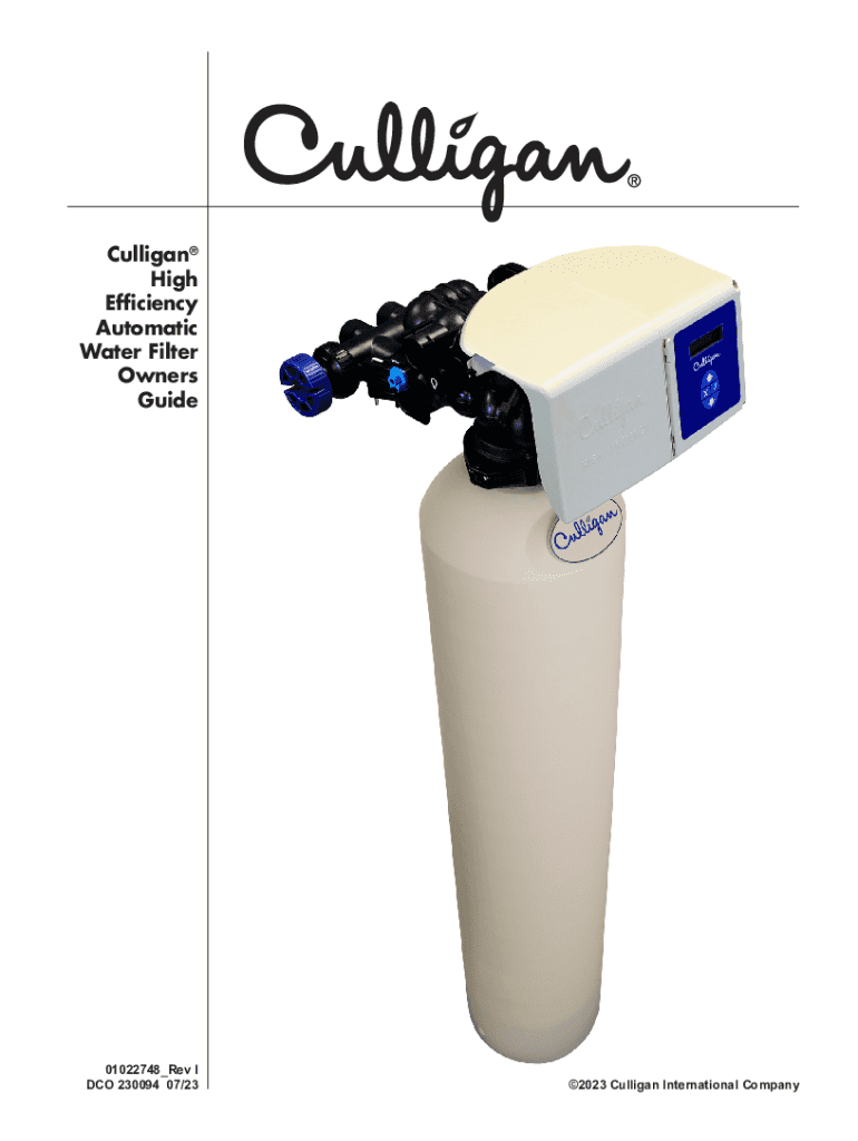 Culligan High Efficiency Automatic Water Filter Owners Guide01022748_Rev I DCO 230094 07/232023 Culligan International CompanyAttention Culligan CustomerThe installation, service and maintenance of
