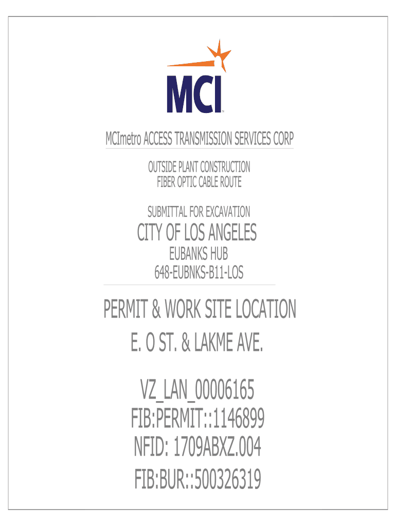 TMMCImetro ACCESS TRANSMISSION SERVICES CORP OUTSIDE PLANT CONSTRUCTION FIBER OPTIC CABLE ROUTE SUBMITTAL FOR EXCAVATIONCITY OF LOS ANGELES EUBANKS HUB 648EUBNKSB11LOSPERMIT & WORK SITE LOCATION E.