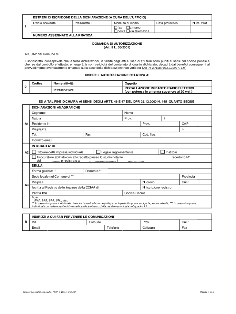 ESTREMI DI ISCRIZIONE DELLA DICHIARAZIONE (A CURA DELLUFFICIO) Ufficio riceventePresentata ilModalit di inoltro1fax postaData protocolloNum. Prota mano via telematicaNUMERO ASSEGNATO ALLA PRATICA