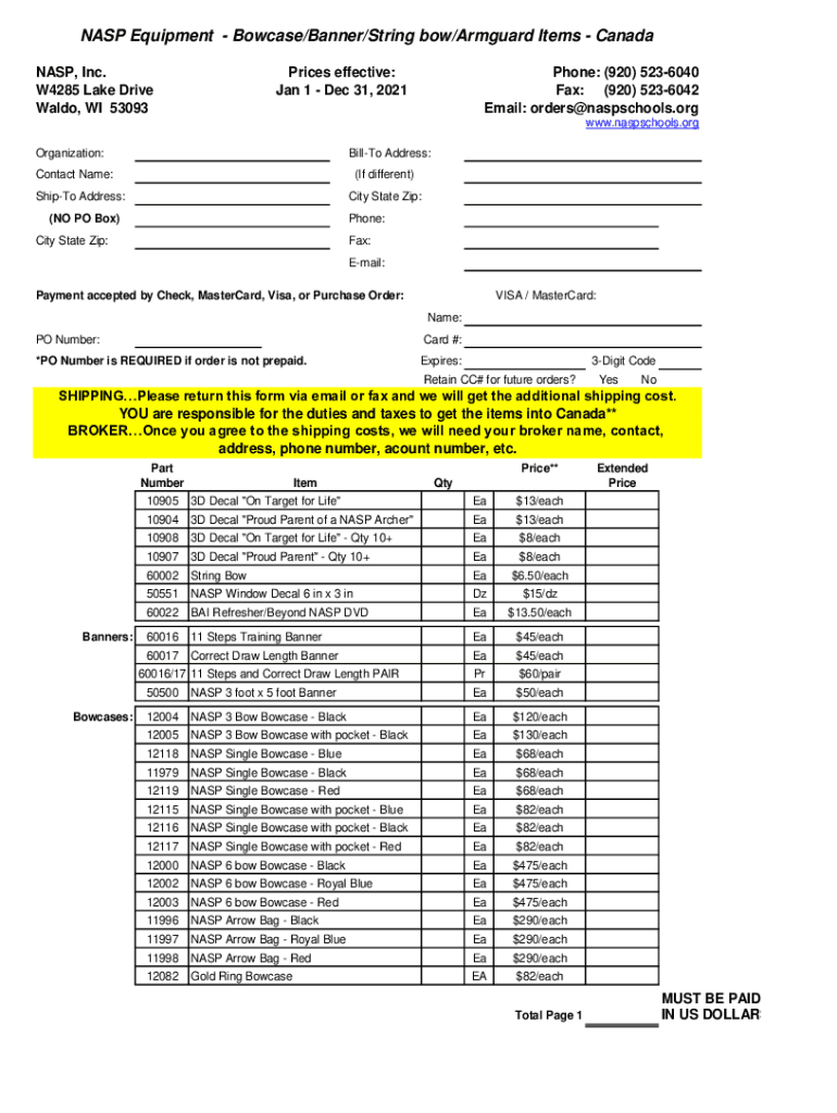 Fill out your nasp equipment - bowcasesbannerstringbowarmguards online with pdfFiller!