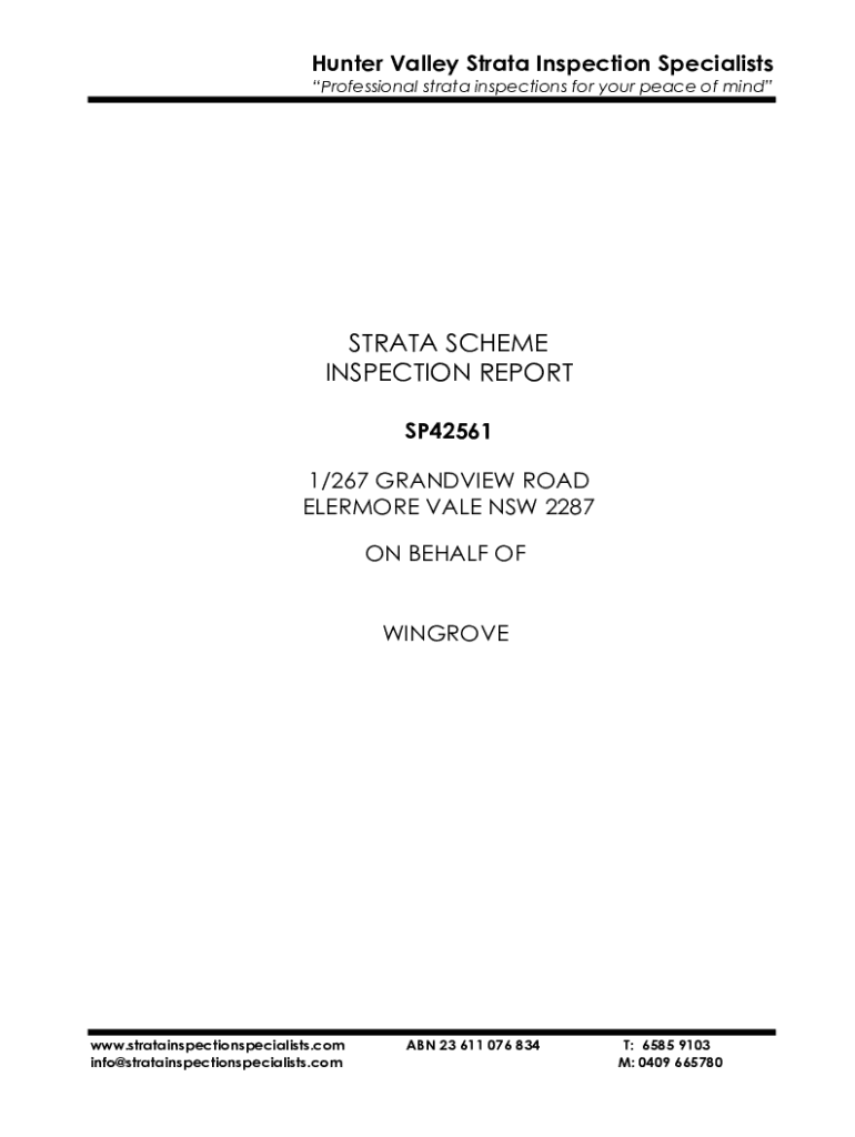 Hunter Valley Strata Inspection Specialists Professional strata inspections for your peace of mindSTRATA SCHEME INSPECTION REPORT SP42561 1/267 GRANDVIEW ROAD ELERMORE VALE NSW 2287 ON BEHALF OF WINGROVEwww.stratainspectionspecialists.com