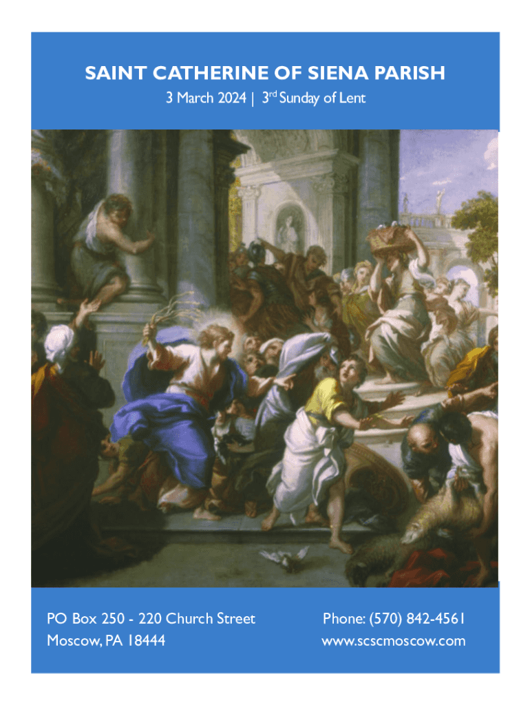 SAINT CATHERINE OF SIENA PARISH 3 March 2024 | 3rd Sunday of LentPO Box 250 220 Church Street Moscow, PA 18444Phone: (570) 8424561 www.scscmoscow.comSAINT CATHERINE OF SIENA PARISH A Roman Catholic