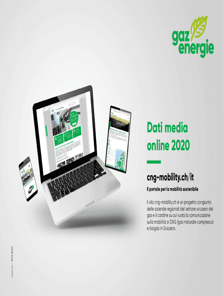 Dati media online 2020 cngmobility.ch/it Il portale per la mobilit sostenibileviva.ch 14052020Il sito cngmobility.ch un progetto congiunto delle aziende regionali del settore svizzero del gas e il