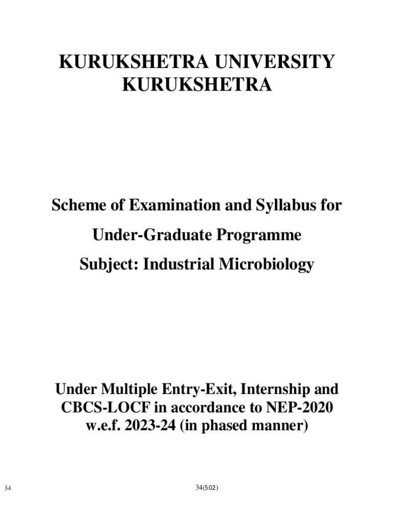 Subject: Industrial MicrobiologyUnder Multiple EntryExit, Internship and