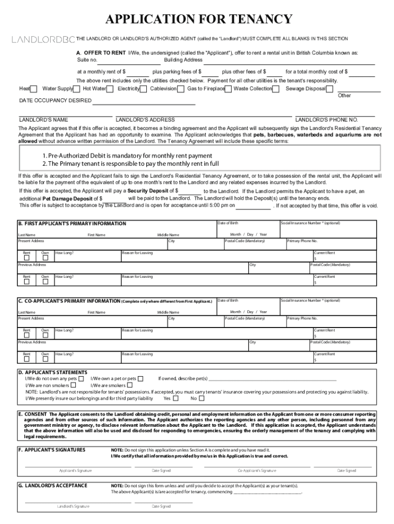 Edit your rental application form bc form online