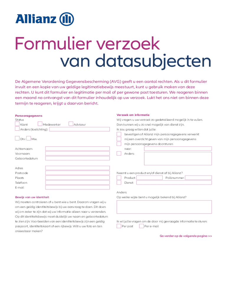 Iedereen die toegang wil tot zijn of haar persoonsgegevens kan een formulier verzoek van data indienen.