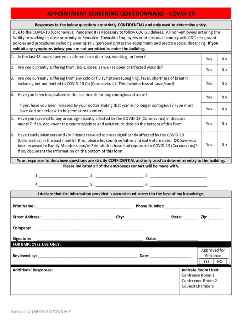Get the free appointment Screening QUESTIONNAIRE - COVID-19