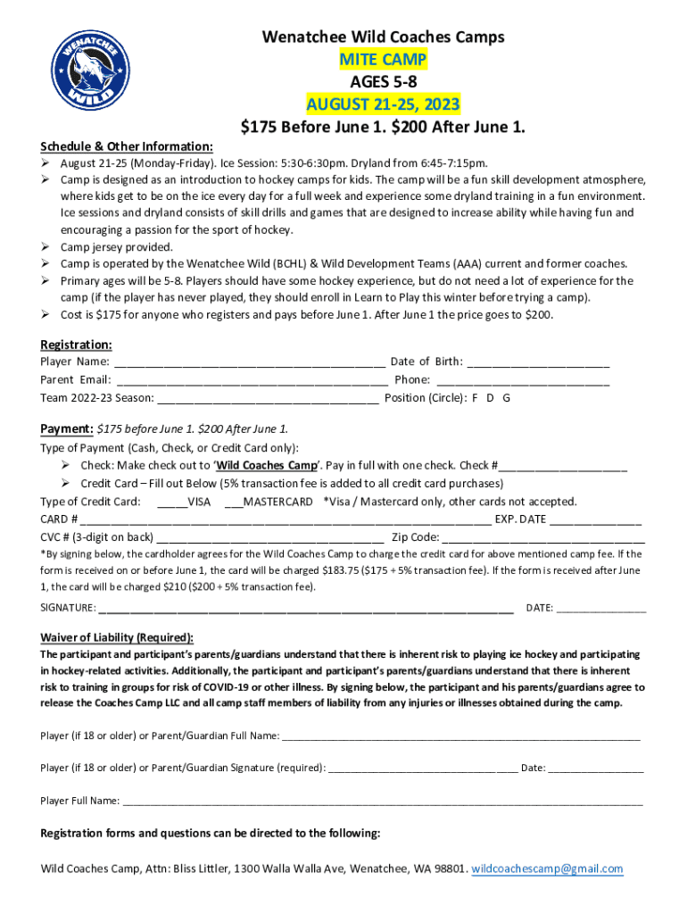 Edit your wenatchee wild coaches camps form online