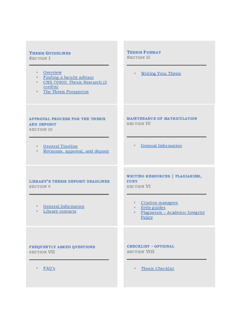 THESIS GUIDELINES SECTION I Overview Finding a faculty advisor CNS 70900: Thesis Research (3 credits) The Thesis ProspectusAPPROVAL PROCESS FOR THE THESIS AND DEPOSIT SECTION III General Timeline