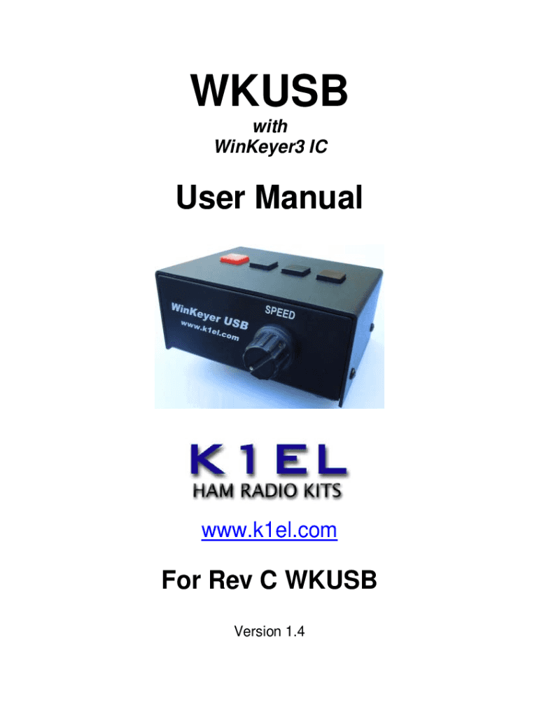 WKUSB with WinKeyer3 ICUser Manualwww.k1el.comFor Rev C WKUSB Version 1.4K1ELWKUSB Rev C with WinKeyer3 User ManualWKUSBIntroduction This document will describe WKUSB and its various interfaces. All