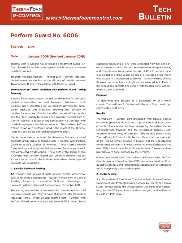 THERMAFOAM RCONTROL sales@thermafoamrcontrol.comTECHBULLETINPerform Guard No. 6006 Subject:SIPsDate:January 2008 (Revised January 2019)ThermaFoam RControl has developed a treatment called Perform