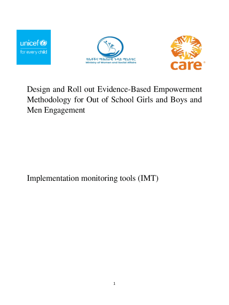 Design and Roll out EvidenceBased Empowerment Methodology for Out of School Girls and Boys and Men EngagementImplementation monitoring tools (IMT)1Purpose The primary purpose of this document is to