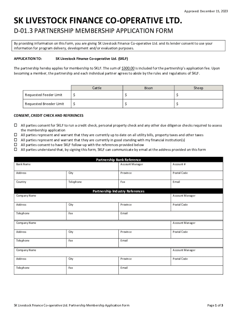 Approved: December 15, 2023SK LIVESTOCK FINANCE COOPERATIVE LTD.