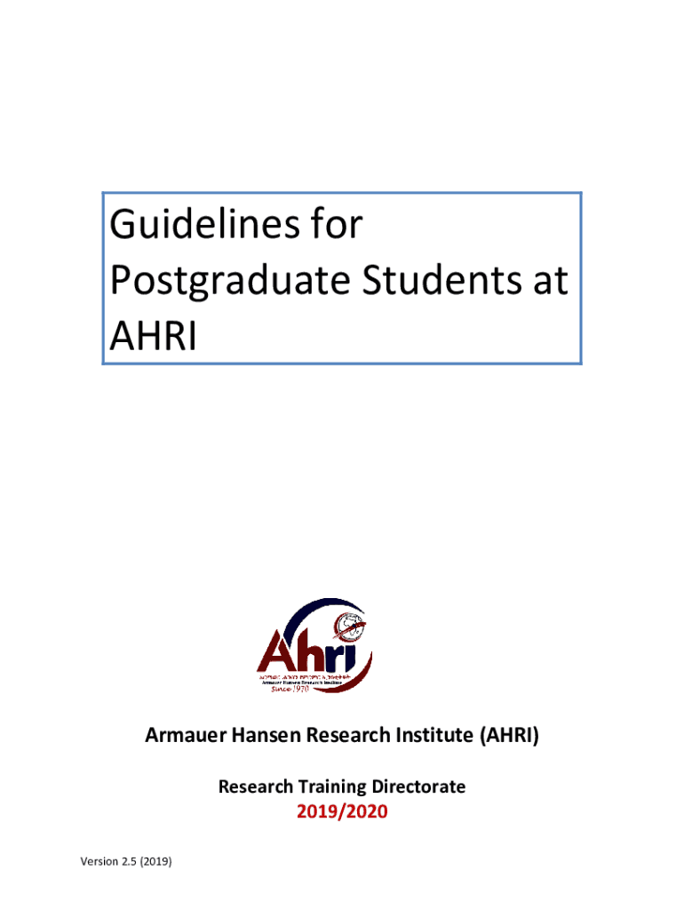 Guidelines for Postgraduate Students at AHRIArmauer Hansen Research Institute (AHRI) Research Training Directorate 2019/2020 Version 2.5 (2019)Contents 1.Introduction ..........................................................................................................................................