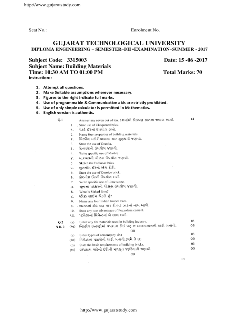 Http://www.gujaratstudy.comSeat No.: ___Enrolment No.___GUJARAT TECHNOLOGICAL UNIVERSITY