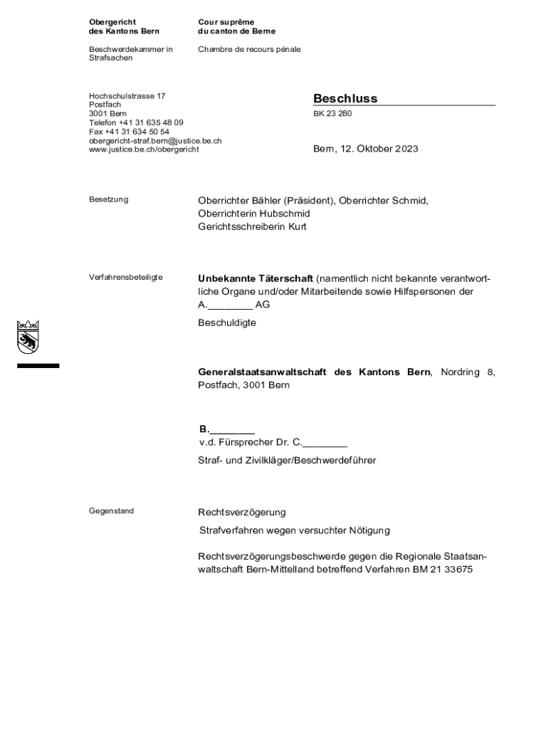 Obergericht des Kantons BernCour suprme du canton de BerneBeschwerdekammer in StrafsachenChambre de recours pnaleHochschulstrasse 17 Postfach 3001 Bern Telefon +41 31 635 48 09 Fax +41 31 634 50 54