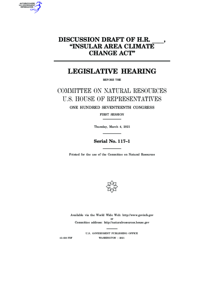 DISCUSSION DRAFT OF H.R. ___, INSULAR AREA CLIMATE CHANGE ACTLEGISLATIVE HEARING BEFORE THECOMMITTEE ON NATURAL RESOURCES U.S. HOUSE OF REPRESENTATIVES ONE HUNDRED SEVENTEENTH CONGRESS FIRST SESSIONThursday,