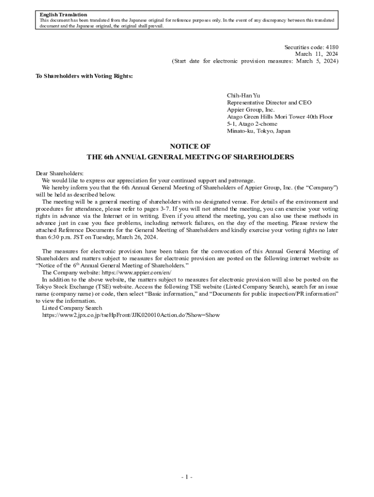 English Translation This document has been translated from the Japanese original for reference purposes only. In the event of any discrepancy between this translated document and the Japanese original,