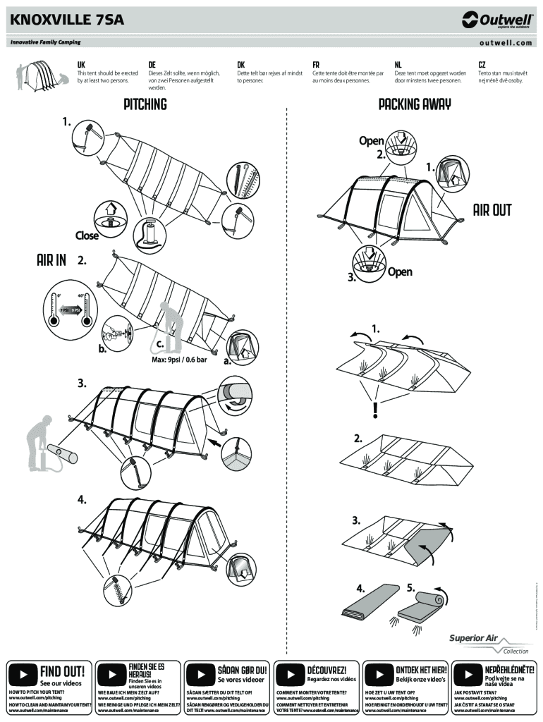 KNOXVILLE 7SA 2 peopleUKDEDKFRNLCZThis tent should be erected by at least two persons.Dieses Zelt sollte, wenn mglich, von zwei Personen aufgestellt werden.Dette telt br rejses af mindst to personer.Cette