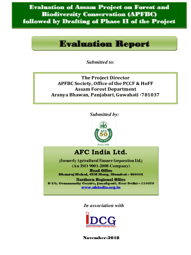 Evaluation of Assam Project on Forest and Biodiversity Conservation (APFBC) followed by Drafting of Phase II of the ProjectEvaluation Report Submitted to:The Project Director APFBC Society, Office