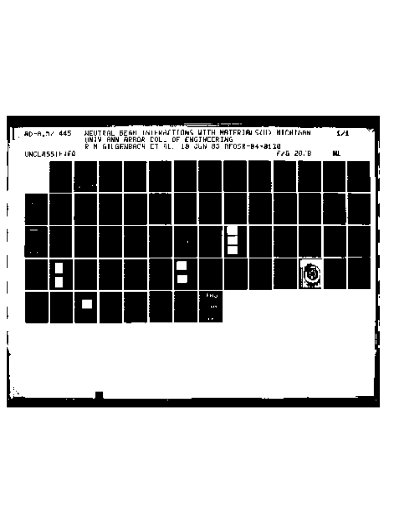 ADA157 445 UNCLASSIIEDGNEUTRAL BEAM INTERACTIONS WITH MATERIALS(J) MICHIGAN UNIV ANN ARBOR COLL OF ENGINEERING RGILGENBACH ET AL. 18 JUN 85 AFOSR848i38 20/IlfllllliIIhfI/ Nlfllflflflflfifl..f EiEEEBBEEIBBiEi