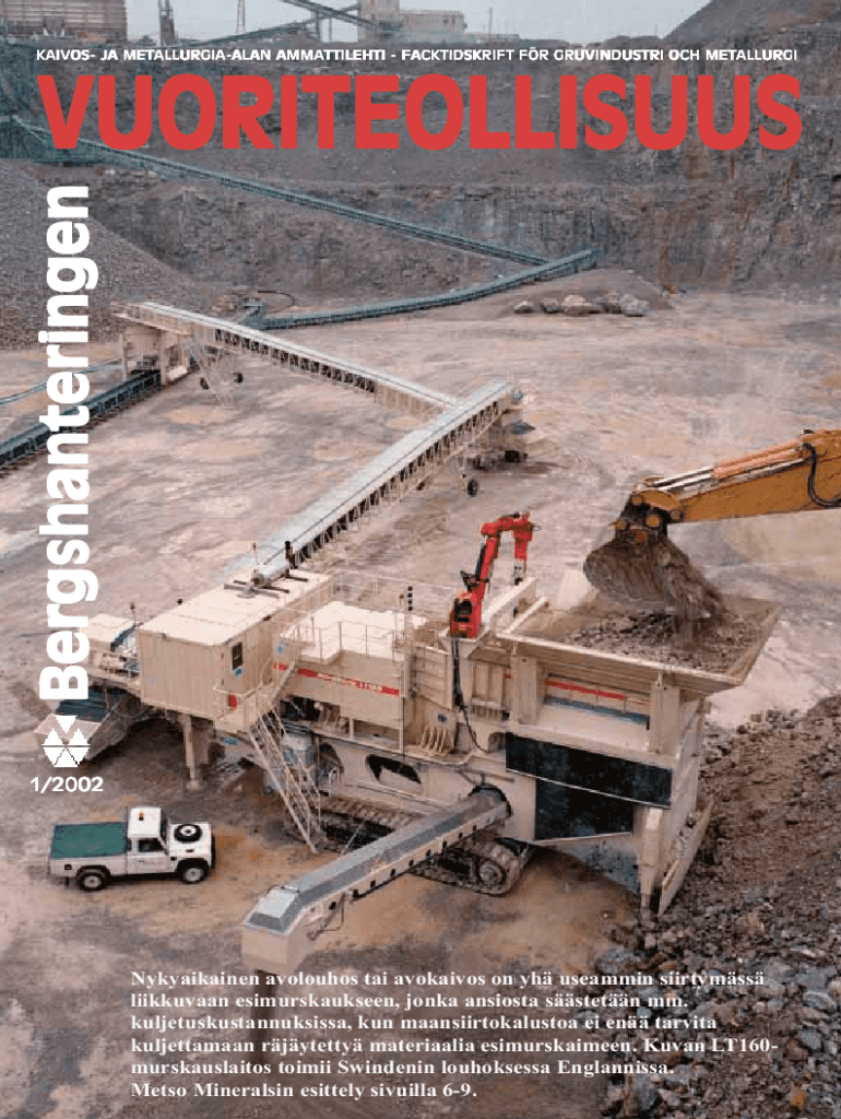 KAIVOS JA METALLURGIAALAN AMMATTILEHTI FACKTIDSKRIFT FR GRUVINDUSTRI OCH METALLURGIBergshanteringenVUORITEOLLISUUS1/2002Nykyaikainen avolouhos tai avokaivos on yh useammin siirtymss liikkuvaan esimurskaukseen,