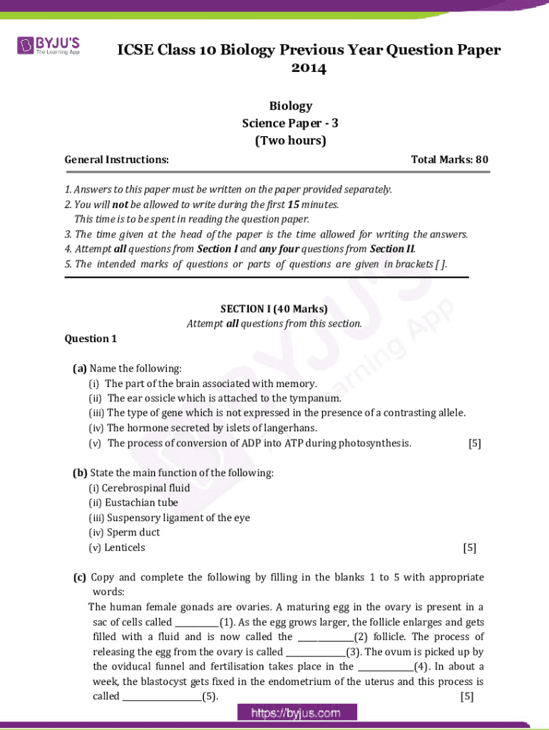 Fill out your icse class 10 biology online with pdfFiller!