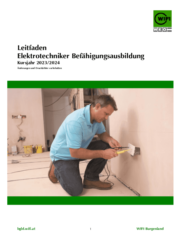 Leitfaden Elektrotechniker Befhigungsausbildung Kursjahr 2023/2024 nderungen und Druckfehler vorbehaltenbgld.wifi.at1WIFI BurgenlandSehr geehrte Interessentin! Sehr geehrter Interessent! Sie wollen