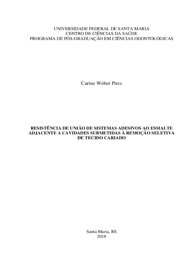 UNIVERSIDADE FEDERAL DE SANTA MARIA CENTRO DE CINCIAS DA SADE PROGRAMA DE PSGRADUAO EM CINCIAS ODONTOLGICASCarine Weber PiresRESISTNCIA DE UNIO DE SISTEMAS ADESIVOS AO ESMALTE ADJACENTE A CAVIDADES