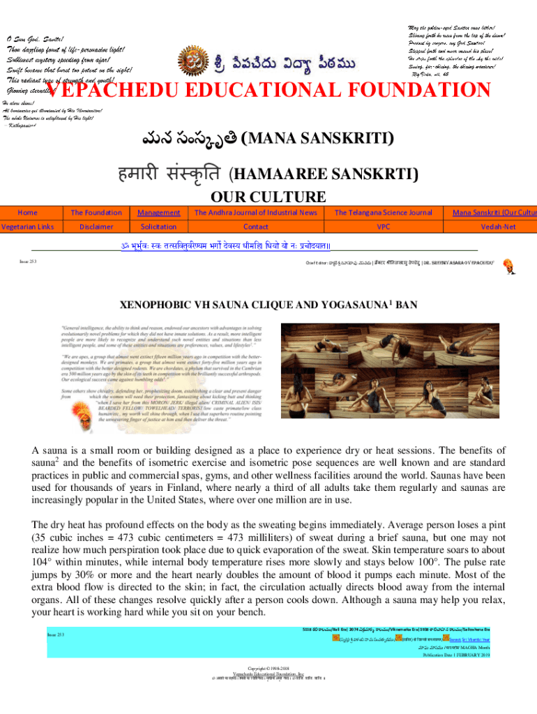 OUR CULTUREHomeThe FoundationManagementThe Andhra Journal of Industrial NewsThe Telangana Science JournalVegetarian LinksDisclaimerSolicitationContactVPCMana