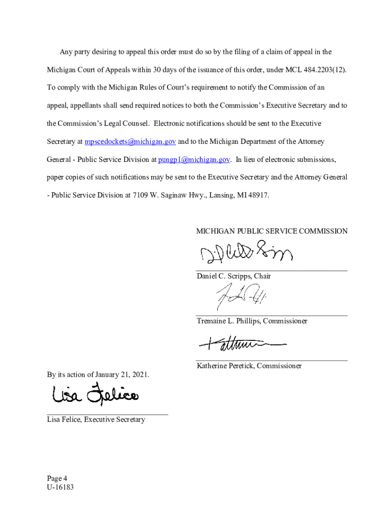 STATE OF MICHIGAN BEFORE THE MICHIGAN PUBLIC SERVICE COMMISSION ***** In the matter, on the Commissions own motion, to implement 2009 PA 182, MCL 484.2310.) ) )Case No. U16183At the January 21, 2021