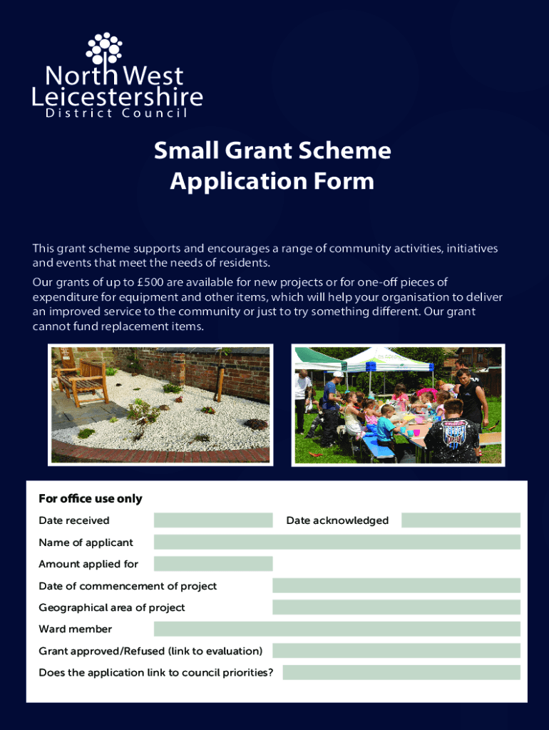 Small Grant Scheme Application Form This grant scheme supports and encourages a range of community activities, initiatives and events that meet the needs of residents. Our grants of up to 500 are