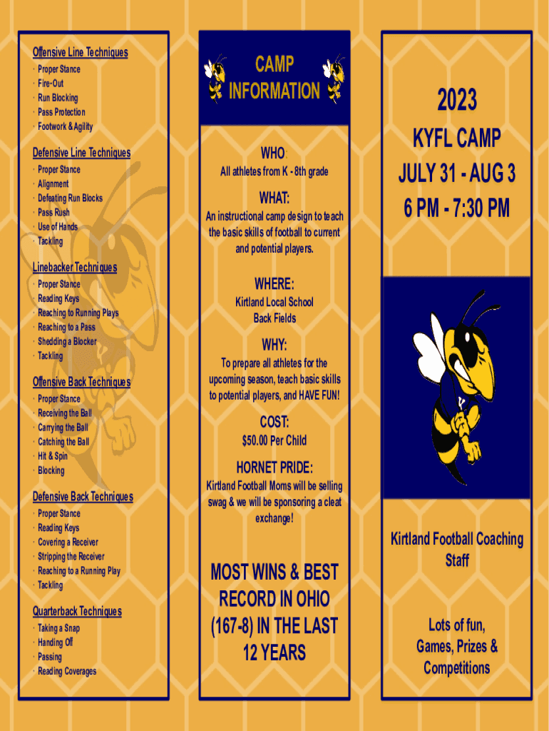 Oensive Line Techniques Proper Stance FireOut Run Blocking Pass Protection Footwork & AgilityDefensive Line Techniques Proper Stance Alignment Defeating Run Blocks Pass Rush Use of Hands TacklingCAMP