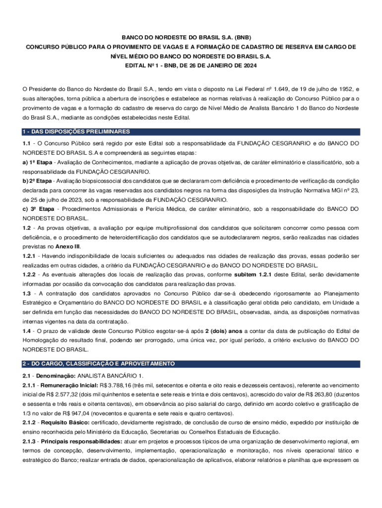 Obtenha o gratuito Banco do Nordeste do Brasil s.a. (BNB) publica Edital de ...