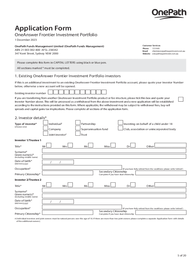 To fill out OnePath One Answer Investment forms, gather all necessary financial information, follow the provided guidelines on the form, fill in your personal and investment details accurately, and then submit the form as instructed.