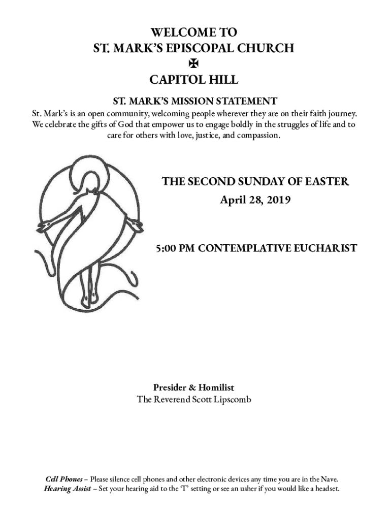 WELCOME TO ST. MARKS EPISCOPAL CHURCH CAPITOL HILL ST. MARKS MISSION STATEMENT St. Marks is an open community, welcoming people wherever they are on their faith journey. We celebrate the gifts of