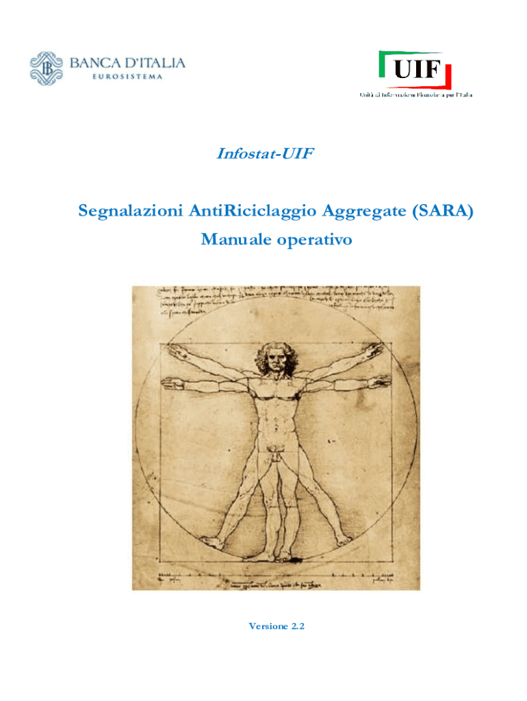 InfostatUIFSegnalazioni AntiRiciclaggio Aggregate (SARA) Manuale operativoVersione 2.2Banca dItalia UIFManuale di Istruzioni per le Segnalazioni AntiRiciclaggio AggregateINDICE 1INTRODUZIONE ...........................................................................................................................