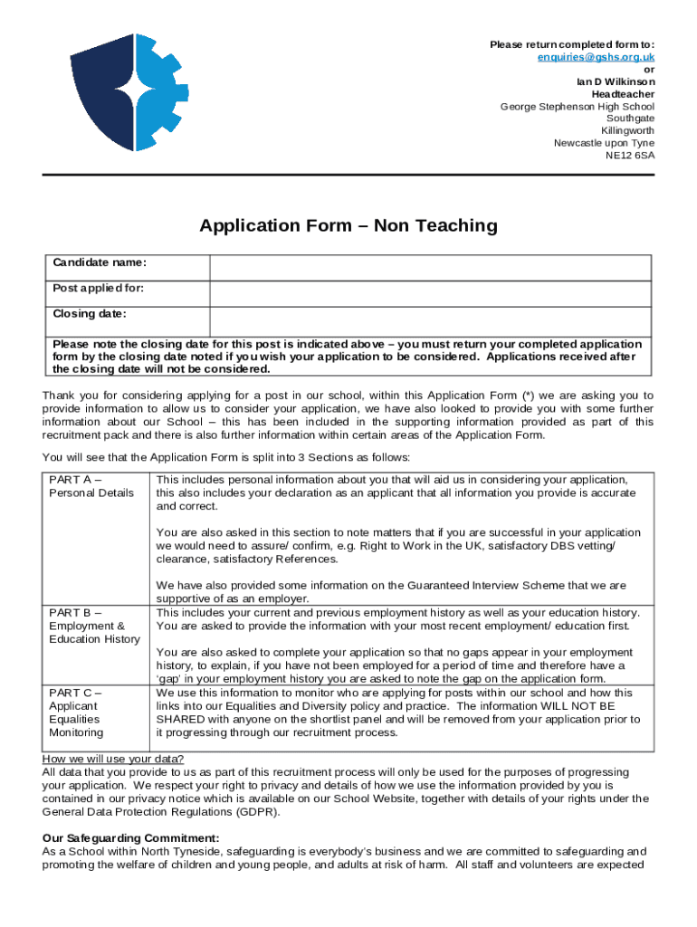 Instructions for the form Please note the closing date for this post is indicated above - you must return your completed application by the closing date noted if you wish your application to be considered